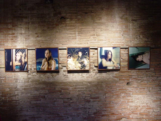 Each artist is shown in one or more old market shops. They measure 4 by 6 meters and the walls are rough antique Roman brick.